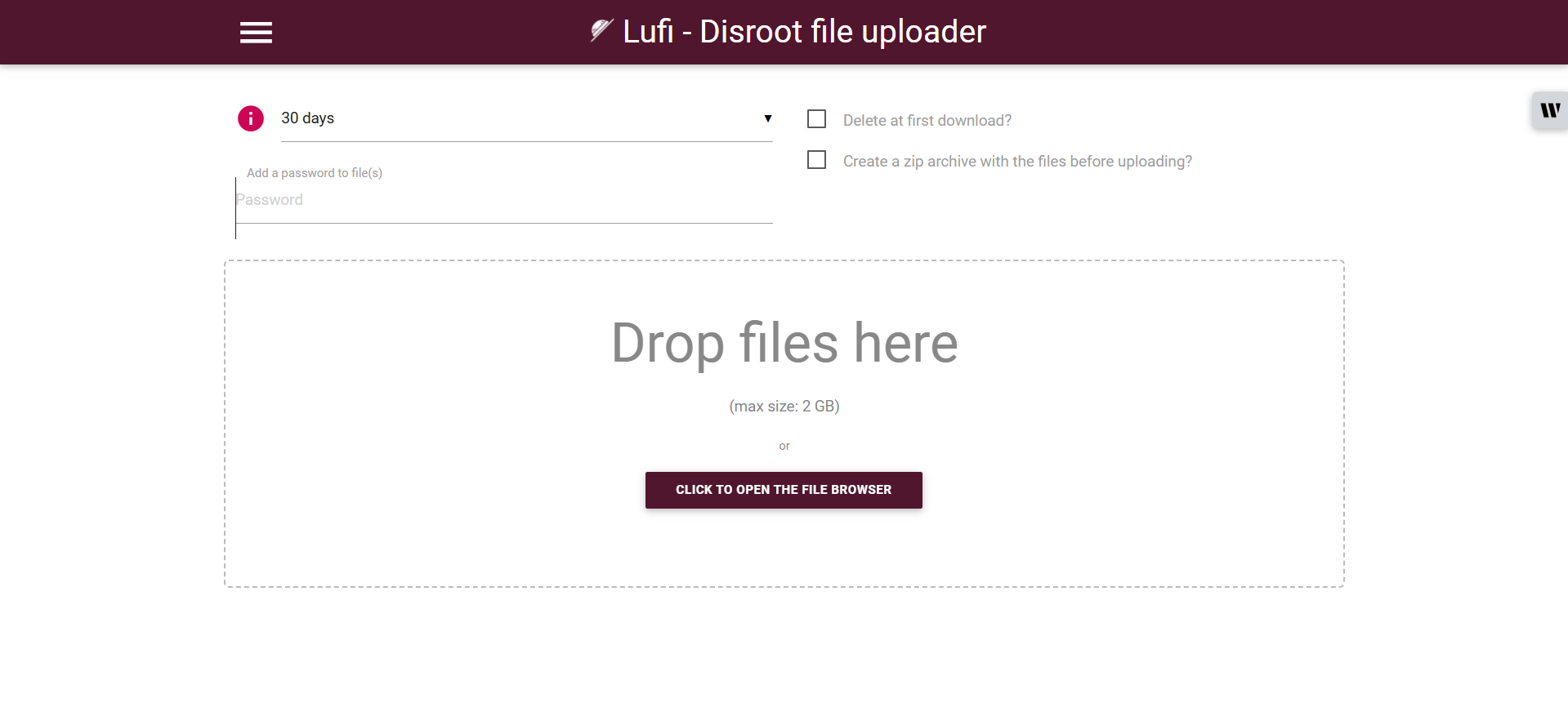 লুফি-ডিসরুট ফাইল আপলোডার একটি ফ্রি ফাইল হোস্টিং সফটওয়্যার। এই সার্ভারে ফাইল আপলোড করার সময়ই সেটি এনক্রিপ্ট হয়ে যায়। যার ফলে সার্ভার অ্যাডমিন বা অ্যাডমিনিস্ট্রেটর আপনার ফাইলের নাম, সাইজ ও ফাইল টাইপ ছাড়া অন্য কোনো তথ্য দেখতে পারে না। পাশাপাশি এই সফটওয়্যারের মাধ্যমে অন্যকে আপনার ফাইলটি পাঠাতেও পারবেন। এই পুরো প্রক্রিয়াটি এন্ড-টু-এন্ড এনক্রিপটেড অবস্থায় হয়ে থাকে যা নিরাপদ। এখানে আপনি আপনার ফাইল পাসওয়ার্ড দিয়ে সংরক্ষিতও রাখতে পারেন এবং ফাইলটি কতদিন পর্যন্ত আপনি এই সার্ভারে রাখতে চাচ্ছেন তাও নির্ধারণ করতে পারেন। আবার যদি চান যে আপলোড করা ফাইলটি কেউ প্রথমবার ডাউনলোড করার পরপরই স্বয়ংক্রিয়ভাবে মুছে যাবে, সেটিও করতে পারবেন। যদি চান যে আপনার ফাইলগুলো আপলোড হওয়ার আগেই জিপ আর্কাইভ হয়ে যাবে, সে ব্যবস্থাও রয়েছে এখানে।